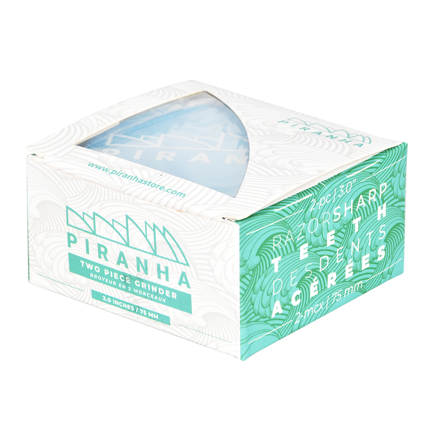 In the vibrant currents of the canna-accessory market, the Piranha Compact Grinder swims ahead with style and efficiency. With teeth as sharp as the Amazon's fiercest fish and a knurled top edge that provides a more comfortable grip, this 2-count solid top grinder measures a whopping 3 inches (76mm) in diameter and is ready to leave nothing behind in its wake except hella shredded ground herb.